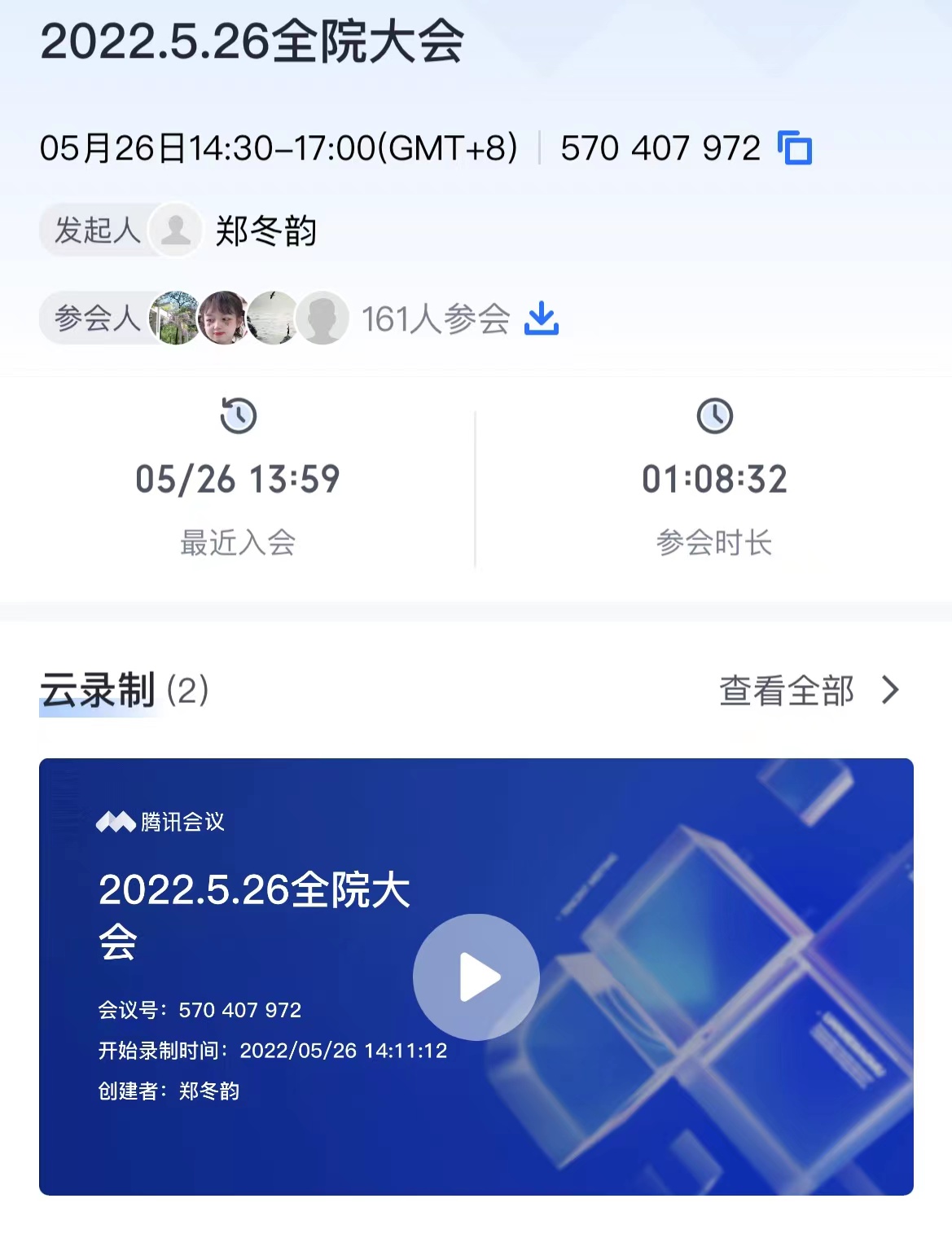 yl23455永利集团于2022年5月26日14:30通过线上会议召开全院大会,传达公司疫情防控工作精神和要求,汇报公司近期工作情况。本次会议由党委书记徐亚军主持,公司全体教师参会。