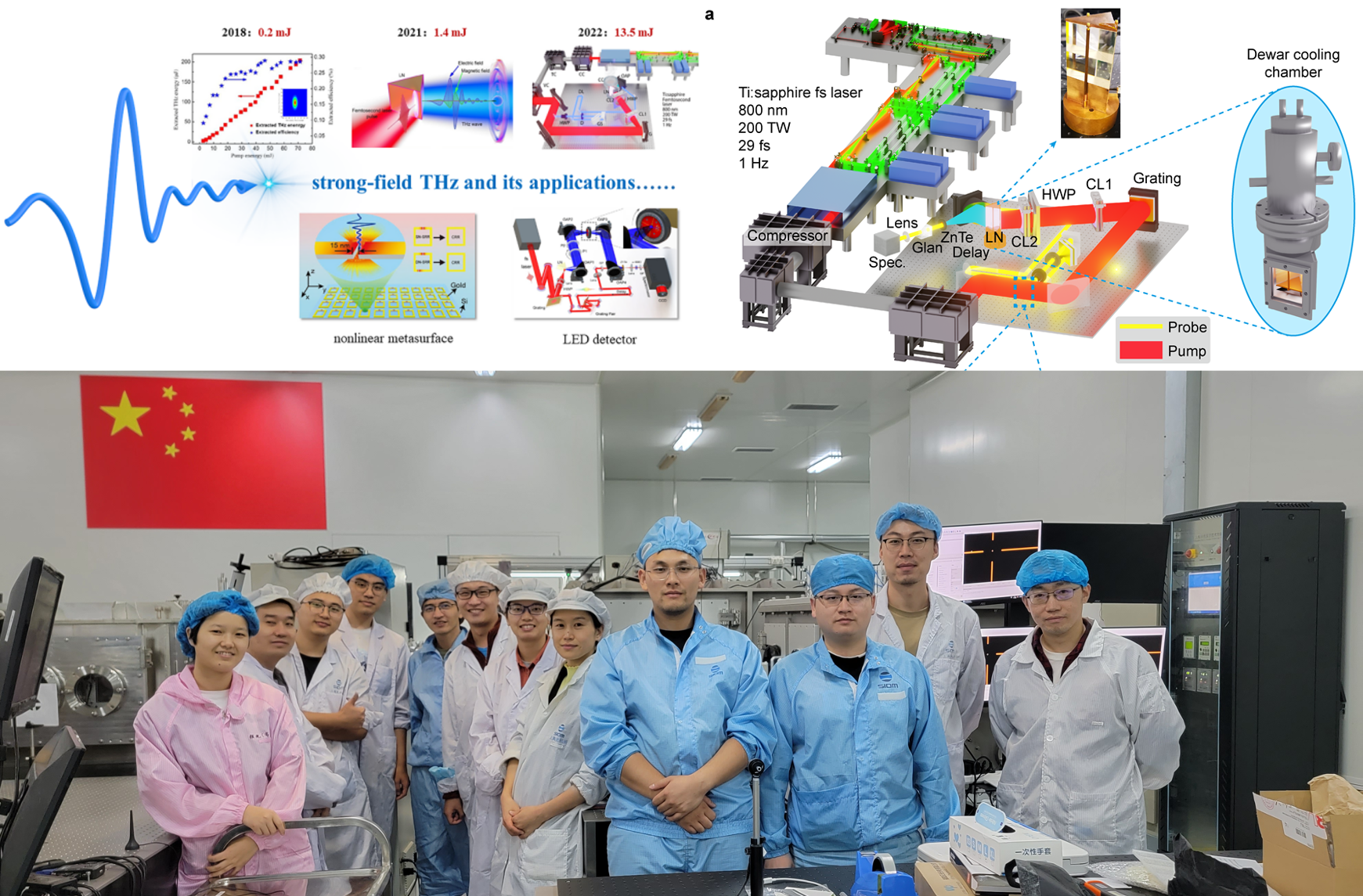 吴晓君老师所研究的太赫兹科学是当前世界科学前沿研究热点,太赫兹技术在航空航天、通信雷达、国家安全、材料科学、生物医疗等领域具有重要的应用价值。产生太赫兹辐射的方法很多,但是要做强却很难。