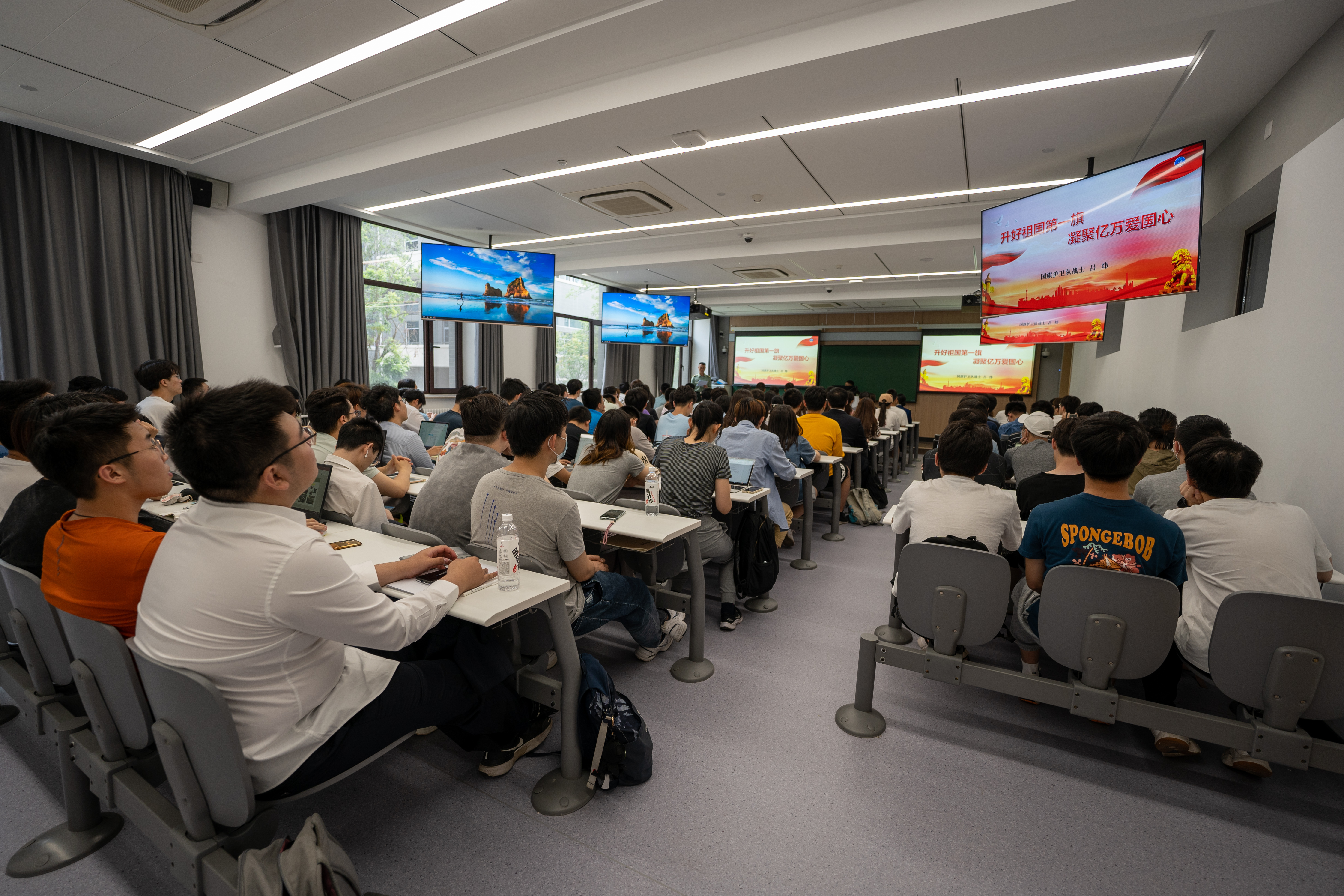 现场同学们深深感受到了国旗护卫队昂扬的精神面貌、训练的艰辛、对守护国旗使命的忠诚和担当,也深刻体会到了国旗尊严的神圣、升旗仪式中激荡的爱国情怀。