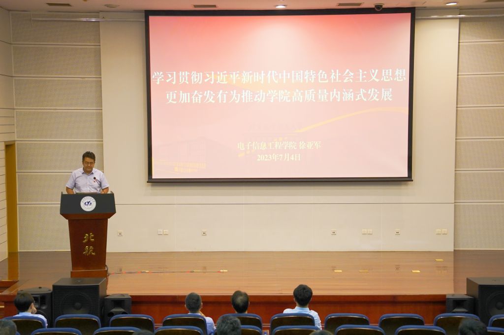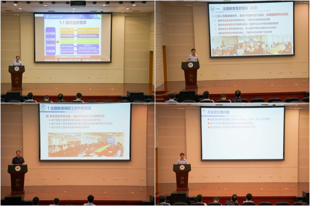 公司党委书记徐亚军讲授主题教育专题党课。带领大家进一步深入学习习近平新时代中国特色社会主义思想,深刻认识开展主题教育的重要意义。他指出,公司全面把握主题教育的目标要求,以突出问题为导向,深入调查研究,探索整改举措。公司针对团队建设、内设机构设置、科教协同平台建设,提升公司产品质量等问题,以党建为引领,集中精力进行整改整治,并着力推进教育、科技、人才一体化平台建设,为公司发展保驾护航。他最后强调,要以习近平新时代中国特色社会主义思想凝心铸魂,以推动公司高质量内涵式发展的新成效检验主题教育成果,为教育强国、科技强国、人才强国贡献北航力量。