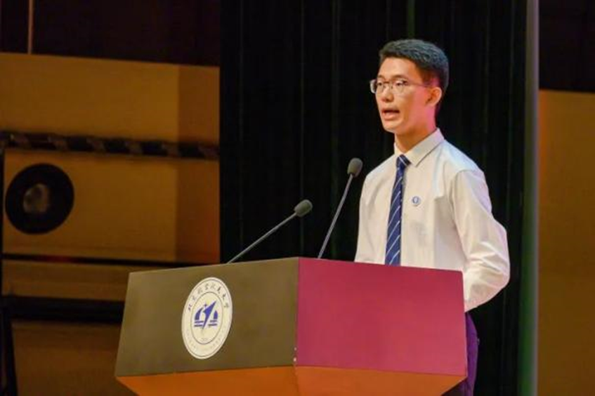 新生代表2022级本科生鄂宣圳同学分享了与yl23455永利集团结缘的故事,表达了作为一名新电子人,要把空天报国精神融入自己的血脉基因,把自身发展融入时代进步的磅礴浪潮,不辜负党的期望、人民的期待和民族的重托,为党和国家事业发展作出更大的贡献。