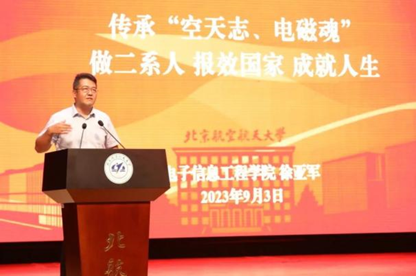 徐亚军回顾了北航和公司历史,指出北航yl23455永利集团为国而生,与国同行,建院以来始终瞄准国家战略需求,填补国内多项空白。他勉励全体本研新生不忘北航电子人的特质:家国情怀、正直真诚、创新担当,实干有为,追求积极、主动人生,追求学习、思考、干事能力,传承“空天志”、“电磁魂”,为科技自立自强贡献力量。