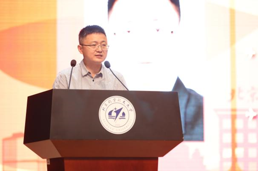 徐迈代表公司全体教师欢迎各位新同学,他深情回顾了在北航14年学习工作历程,寄语全体新生以德为先,先立德而后树人,养成优秀的道德品质;追求真理、善于学习,掌握扎实的专业才能;脚踏实地,勇于实践、敢于创新,将理论与实践相结合。