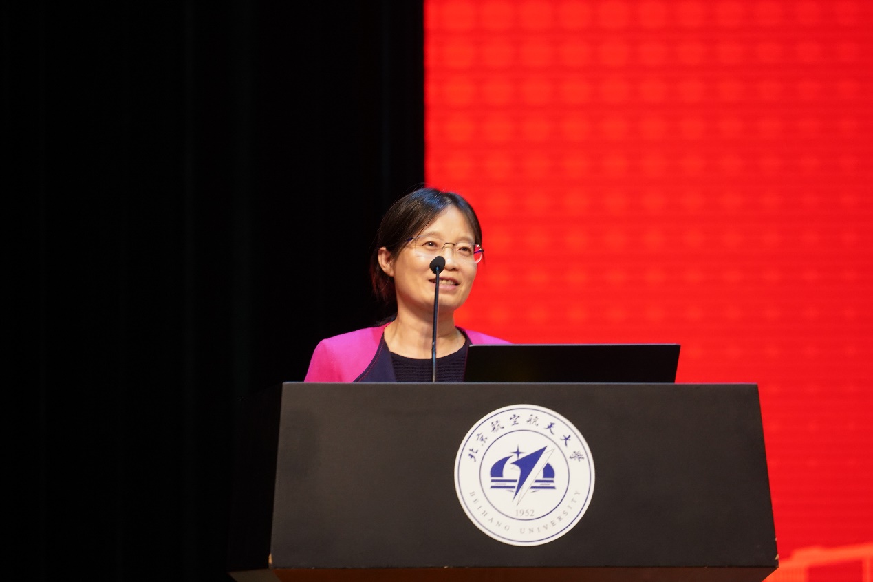1991级本科员工、“北斗女神”王淑芳表示,北航和电子公司给了她知识和灵魂。她分享自己作为北斗第一批建设筹备者的研发经历,讲到在临时任务中与同班同学在西安重聚的故事,感慨电子人遍布祖国各个重要岗位,服务于国家、国防重大战略需求和社会生活各个领域,这一切都离不开公司的培养与支持。她表示自己今后将在新的技术领域继续探索,感谢公司各位恩师的培养,也期待未来与师弟师妹们携手同行。