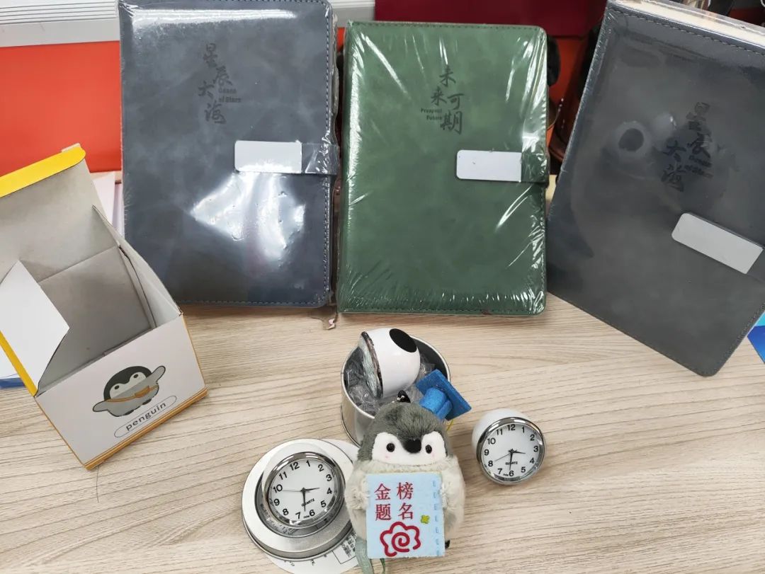 公司为考研同学们提供了笔记本、小闹钟、“考研加油”挂件等慰问品,并把祝福送给每位考研的同学。