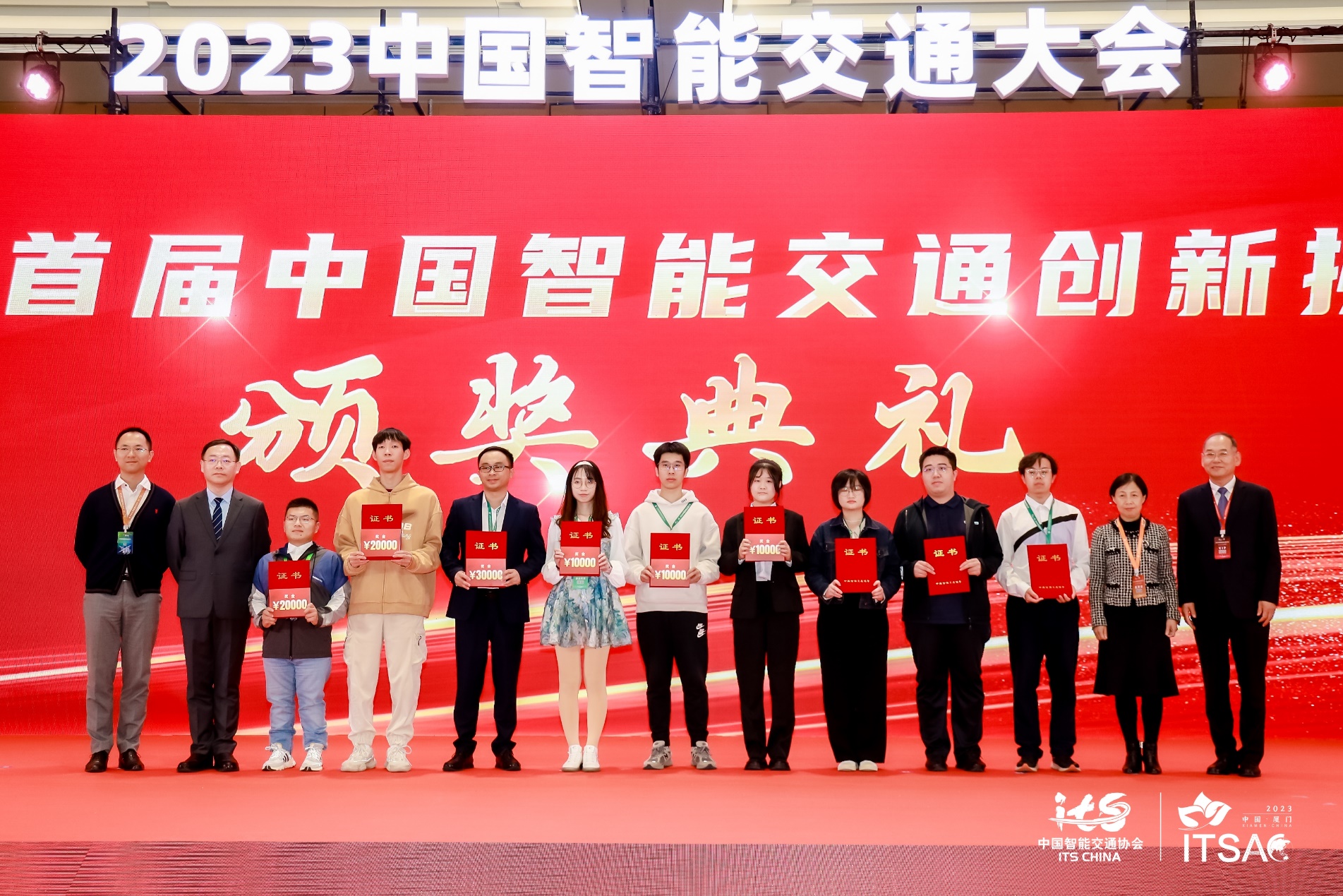 (图1:2023首届智能交通创新挑战赛颁奖典礼,yl23455永利集团获奖代表,右三为秦良雨、右六为董吉雨)