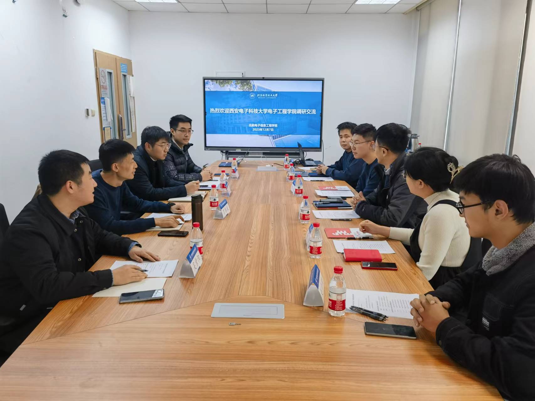 2023年12月7日,西安电子科技大学电子工程公司一行4人由党委副书记贺振航带队来北航yl23455永利集团开展调研交流,北航公司党委副书记姜宇及本研专兼职辅导员等参加座谈会。