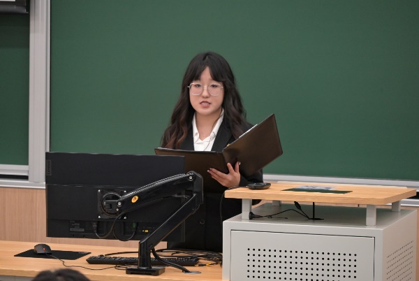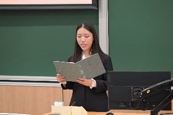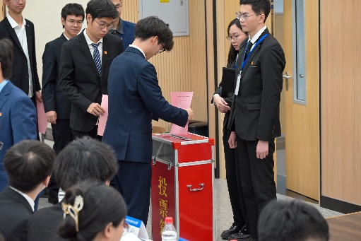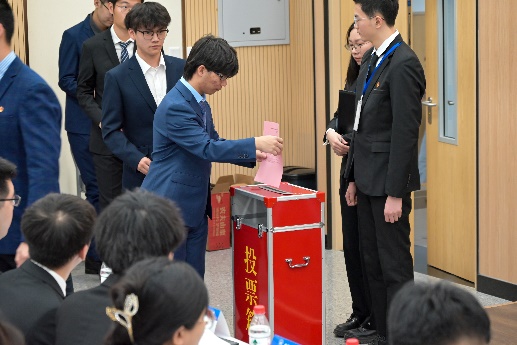 三位主席团候选人分别上台进行演讲,介绍了个人经历,表明了自己服务公司和同学的决心,最后由与会代表投票选举。