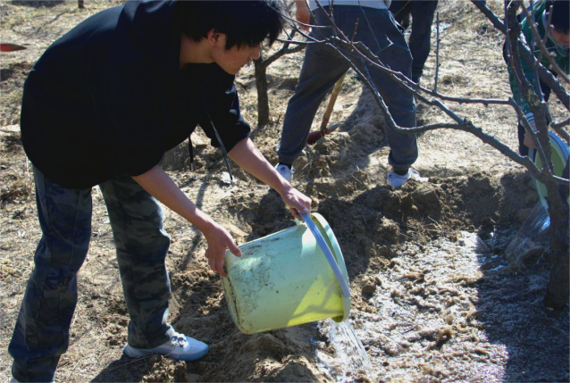 在这次活动中,周围的同学们都快速地积极地融入到植树抚育工作中,我也深受感染,和大家一同帮助林场清理松枝、夯实土堆、浇水呵护。同时,林场的工作人员也为同学们提供耐心的指导,帮助同学们更好地参与。大家共同为创造绿色环境,传播绿色生态理念而努力。