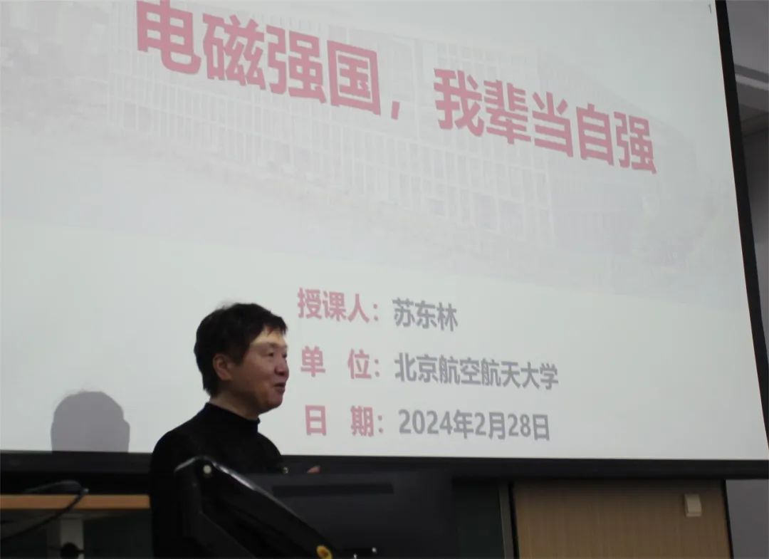 优秀的班级体离不开优秀的教学团队,苏院士从北航电磁兼容技术研究所出发,为大家介绍了北航电磁系的历史沿革与辉煌成就,希望同学们借助强大的团队队伍和优越的科研环境,传承电磁精神,报效祖国,服务国防。