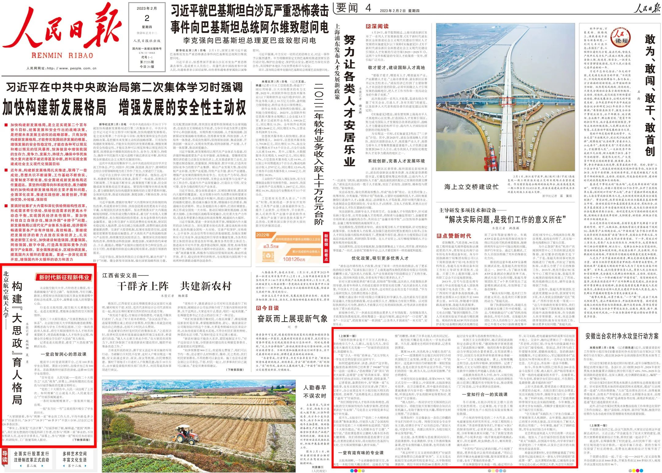 要扎实推进思政课程与课程思政协同育人,就要将思政教育与学科特色、专业特色、课程特色等深度融合,将科研、教学、人才、事件等蕴含的思政元素动态融入专业课程教学。自2020年秋季学期试点开设《习近平新时代中国特色社会主义思想概论》课以来,公司探索将以“空天报国”为内核的北航精神融入课程教学,设置了“科技创新与强国使命”专题,邀请院士团队参与授课。“太震撼了!”北航知行书院员工李骄娴表示,“这样的思政课完全超出了我的预期。”这样的教学改革表明,专业课中的思政元素不仅可以为专业课所用,也可以成为思政课的鲜活素材。公司持续加大课程思政建设投入,深化课程思政与一流课程一体化建设,先后打造136门校级课程思政示范课,实现公司全覆盖,出版《yl23455永利课程思政优秀案例汇编(航空航天篇)》,提升教师课程思政建设能力,使课程思政元素成为专业教学的兴奋点和创新点。相关做法两次获《中国教育报》头版头条报道,2023年2月获《人民日报》头版报道。