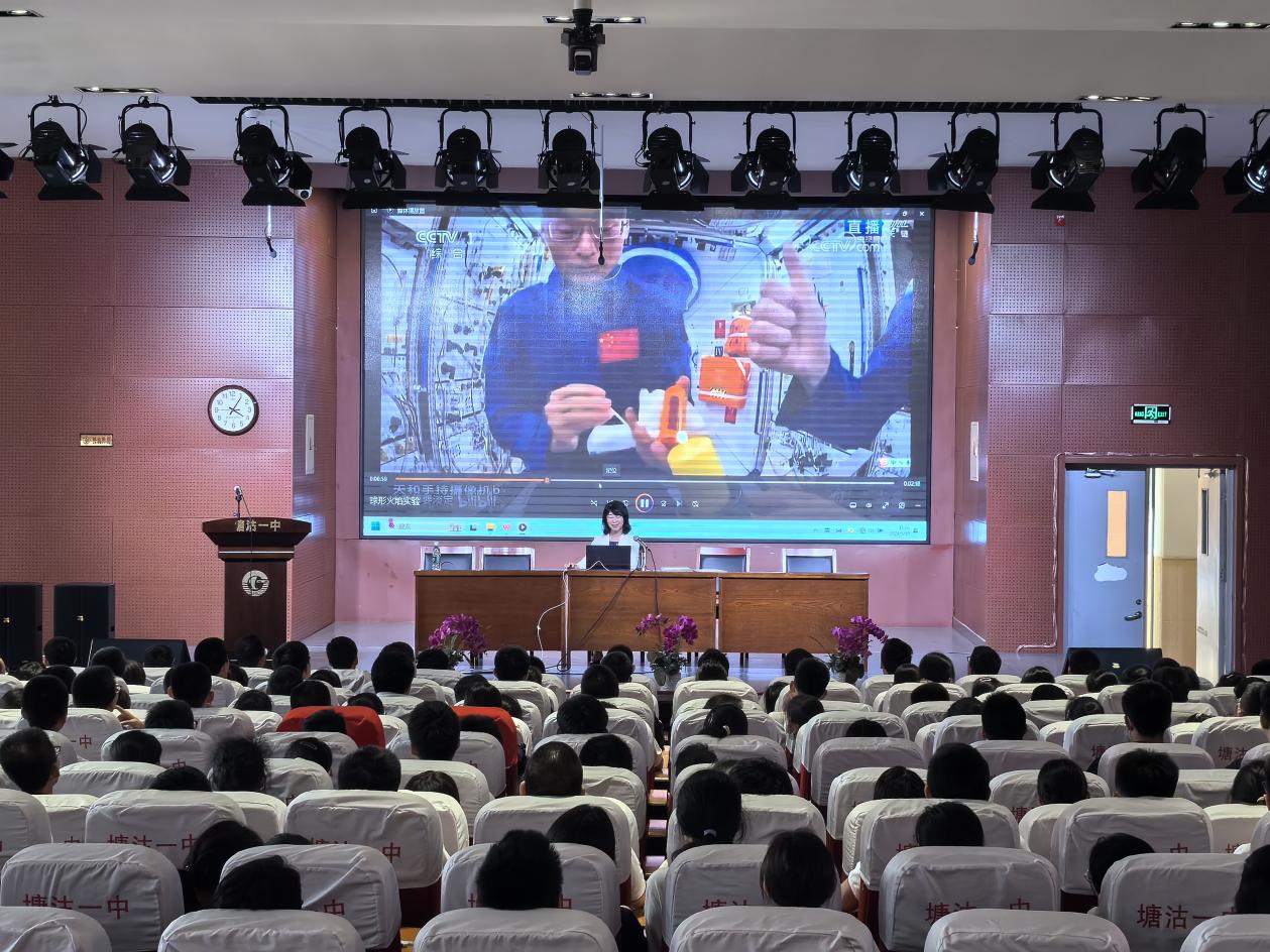在公司大礼堂,北航“立德树人”卓越奖获得者、航空公司贾玉红教授为塘沽一中200余名高一高二优秀员工讲述航空航天科技前沿,培养塘沽学子对中国航空航天事业的热情和志向。