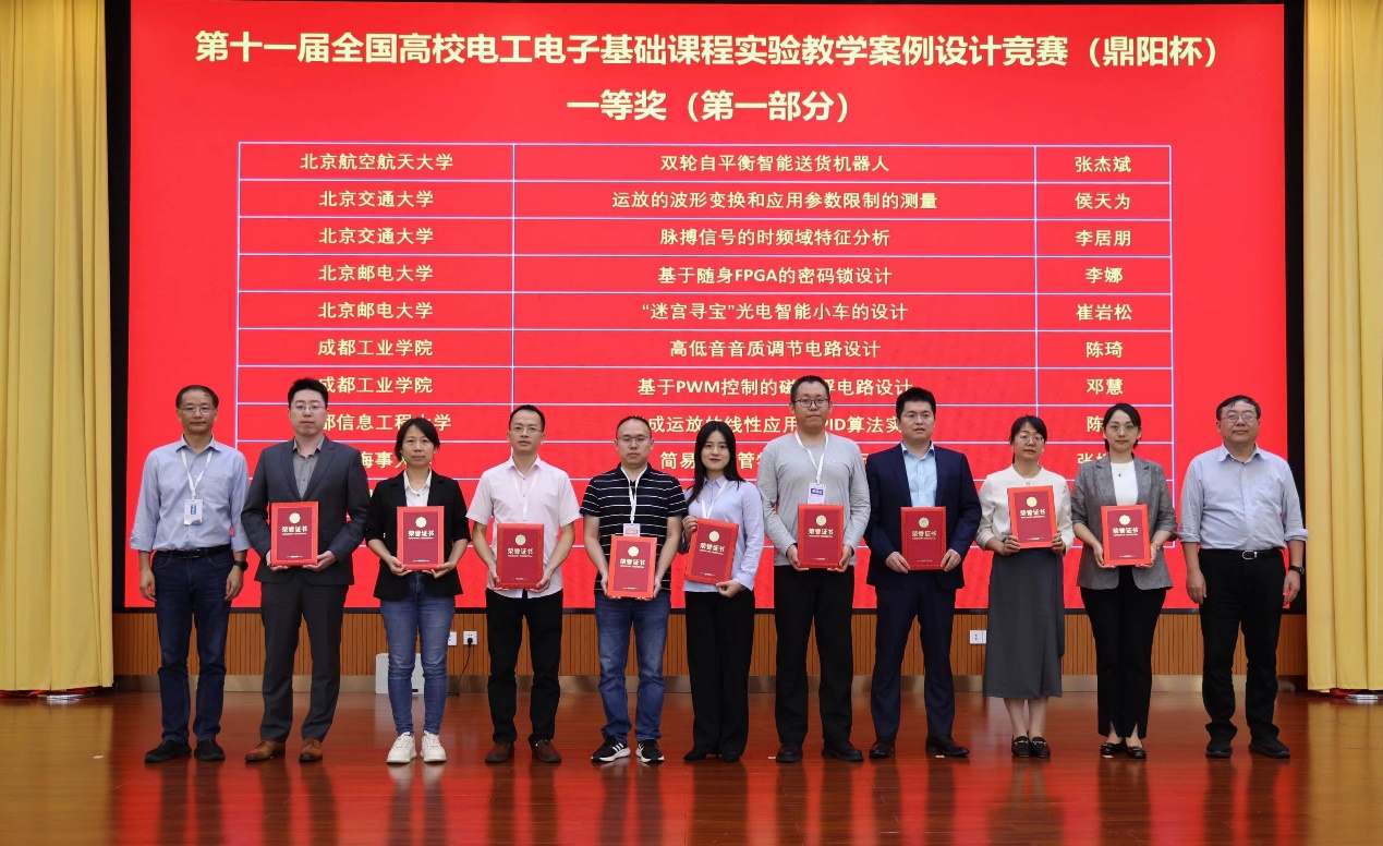 全国高校电工电子基础课程实验教学案例设计竞赛(鼎阳杯)是全国唯一的高校电工电子类基础课程实验教学赛事,已于2018年被中国高等教育学会纳入全国普通高校教师教学竞赛评估项目,并列入教师教学能力排行榜的数据采集源。竞赛旨在通过实验任务要求、教学方法和教学模式设计,引导员工自主学习、研究发现、掌握实验知识方法与技能,综合运用知识、接触工程实际、开展探索研究;通过评选优秀实验案例,展示实验教学先进理念、内容、技术和方法;推广以员工为主体、探究性教学为重点的实验教学改革,提高高校教师实验教学水平。本次竞赛分为初赛和复赛两个阶段,总参赛作品数目达667项。经过5个参赛赛区初赛,北部赛区、华东赛区、西部赛区、华北赛区和中南赛区共推选出162项赛区一等奖参加全国总决赛,在5月18日的总决赛环节,经个人陈述、专家质询、现场打分等环节,产生一等奖候选人及二等奖和三等奖;一等奖候选人参加5月19日的实验授课技能竞赛后,由评审专家组最终评定一等奖获得者,共产生全国一等奖32项,全国二等奖49项,全国三等奖81项。