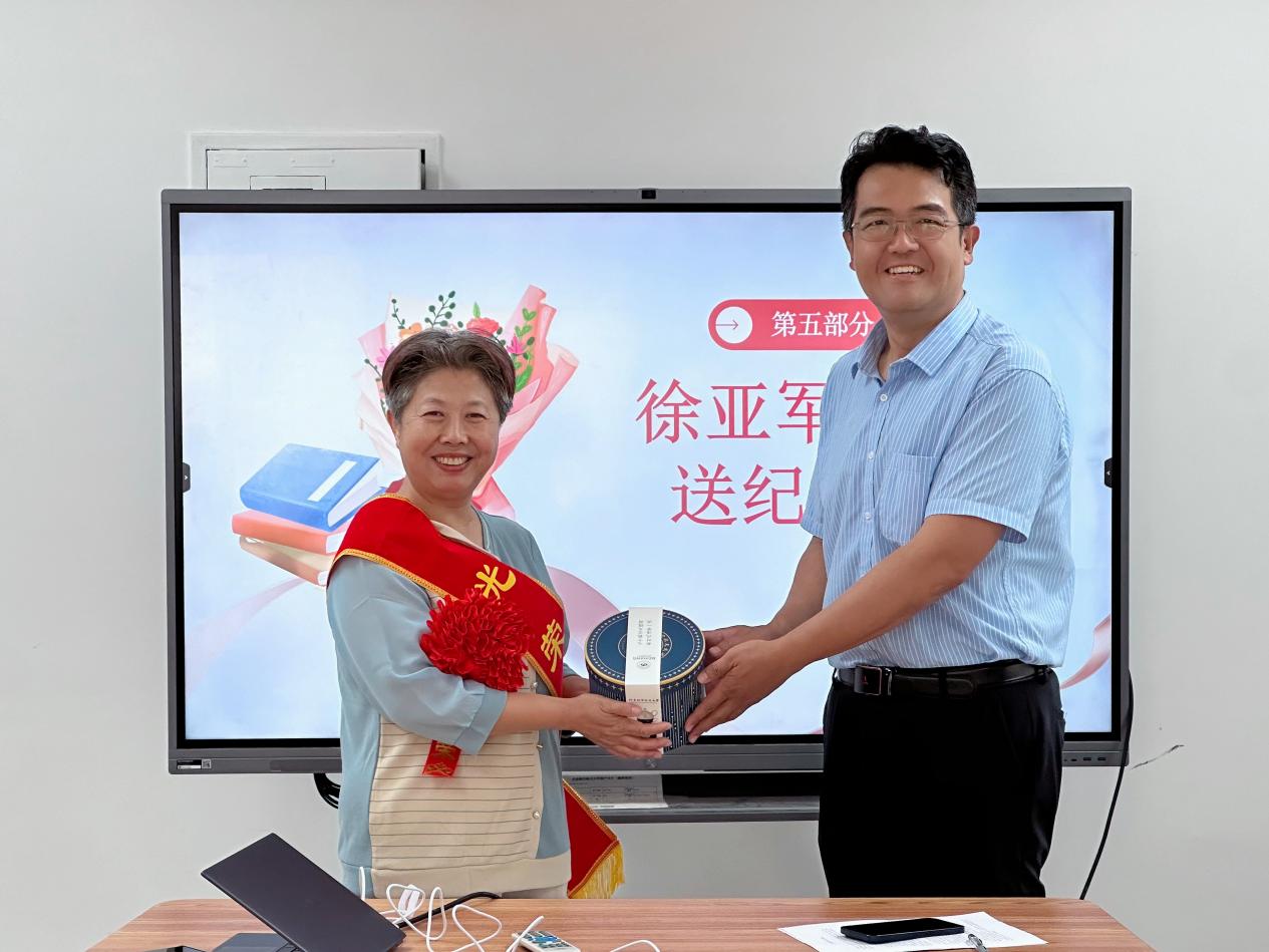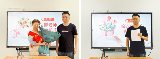 欢送会第一项,徐迈副经理为柳老师献花并致欢送辞。2003年,柳老师从录入成绩学起,逐步成长为业务熟练的教务秘书,一干就是21年。21年中,柳老师始终牢记使命扎实做,保障教学稳运行;始终积极参与用心做,助力培养新模式;始终心系师生主动做,甘为温度机关人。柳老师严谨的工作态度、精湛的业务能力和无私的奉献精神赢得了全院师生的高度评价和衷心感谢。