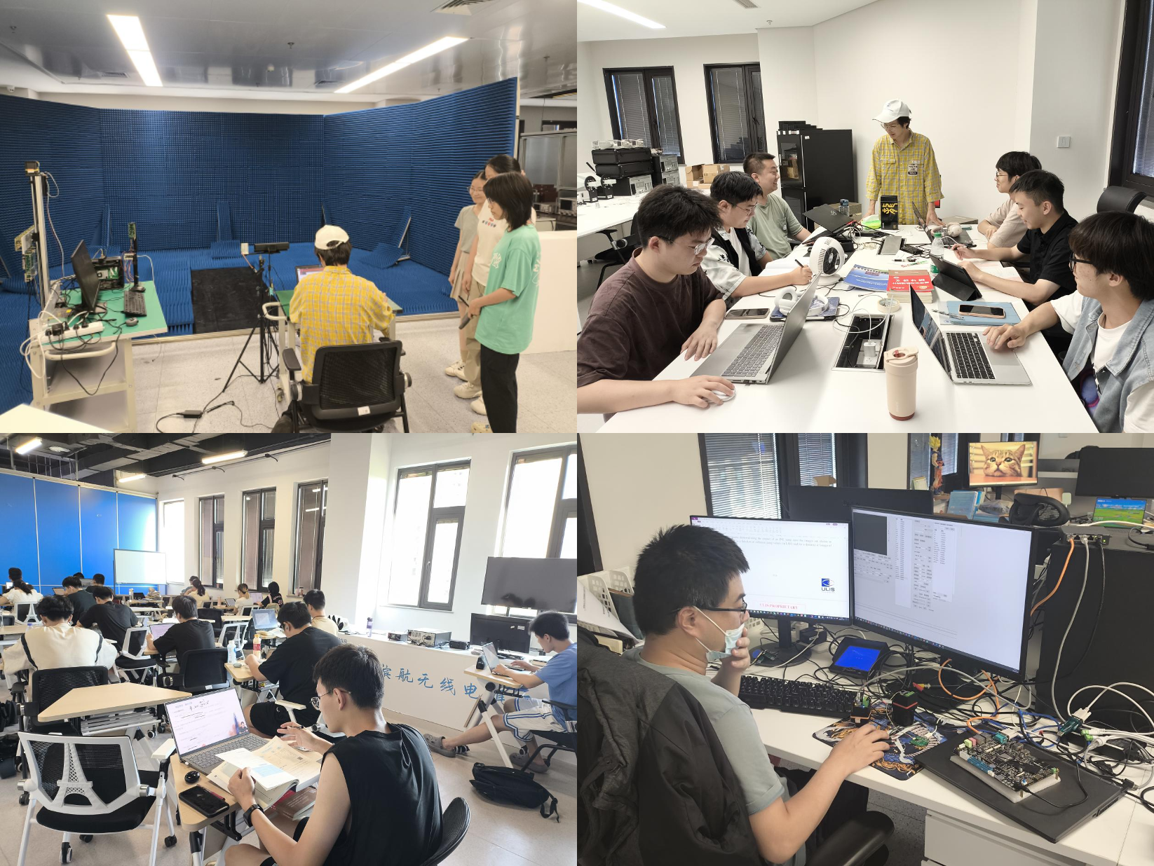 同学们分为毫米波研究组、微波暗室组等多个小团队进行研究实习工作。工作区干净、宽敞,实验室崭新、智能,同学们在学习和解决实际问题中应用所学知识,提前思考未来的发展方向,为下一阶段毕业设计与研究打下坚实基础。